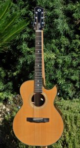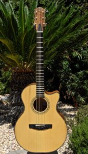 45 Style Heart Pearl Inlay on Top, including around Bottom of Neck, Rosette, Bridge and Fretboard.