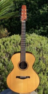 Brazilian Rosewood Back & Sides German Spruce Top Brazilian Rosewood Headstock Overlay & Rosette Ebony Binding w/Koa Purfling Gold Schaller Tuners with Ebony buttons Calton Case 16″ Lower Bout 11.625″ Upper Bout 25.375″ Scale Nut: 1.82″ Saddle: 2.27″ Price: $28,000.00