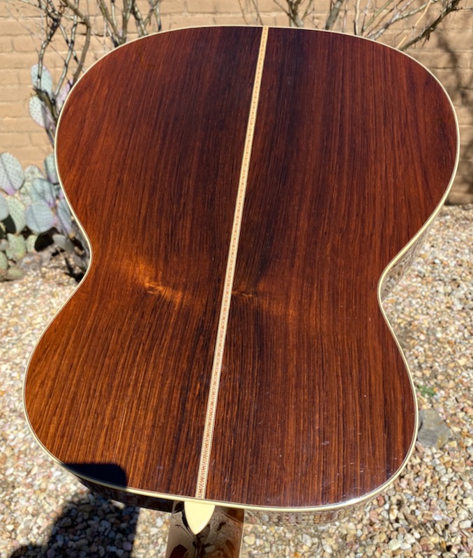 Brazilian Rosewood Back & Sides Alpine Spruce Top 42 Style Abalone Top Border Snowflake Style Fretboard Inlay White Ivroid Bindings Abalone Rosette BRW Headstock Veneer Nickel Waverly Tuners Nut: 1.76″ Saddle: 2.30″ Price: $19,000.00